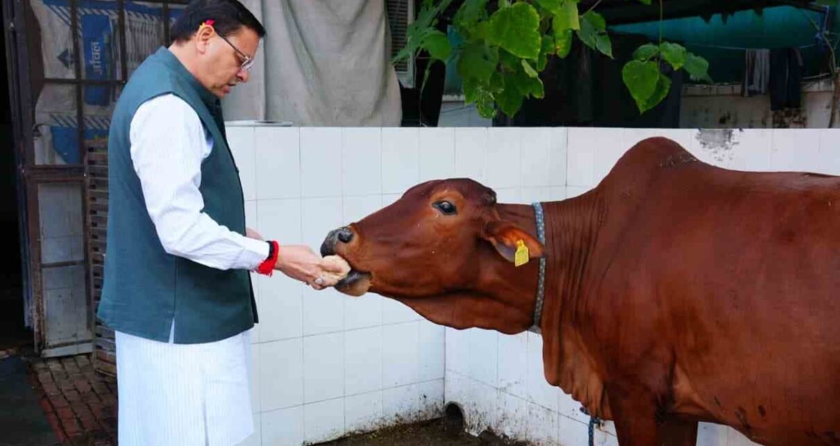 गोवर्धन पूजा के अवसर पर सीएम धामी ने की गौमाता की पूजा, गाय माता के सरंक्षण को लेकर की अपील