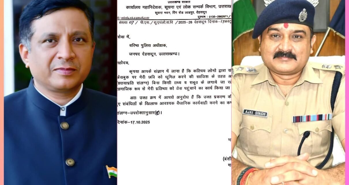 देहरादून। राज्य के महानिदेशक सूचना बंशीधर तिवारी ने सोशल मीडिया पर उनके खिलाफ चल रहे दुष्प्रचार और फेक पोस्ट्स के मामले में वरिष्ठ पुलिस अधीक्षक देहरादून अजय सिंह को पत्र लिखा है। उन्होंने अपनी छवि धूमिल करने की साजिश में शामिल व्यक्तियों के खिलाफ वैधानिक कार्रवाई की मांग की है।